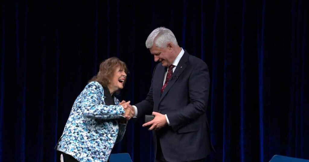 Former PM Stephen Harper receives gold medal from Royal Canadian Geographical Society