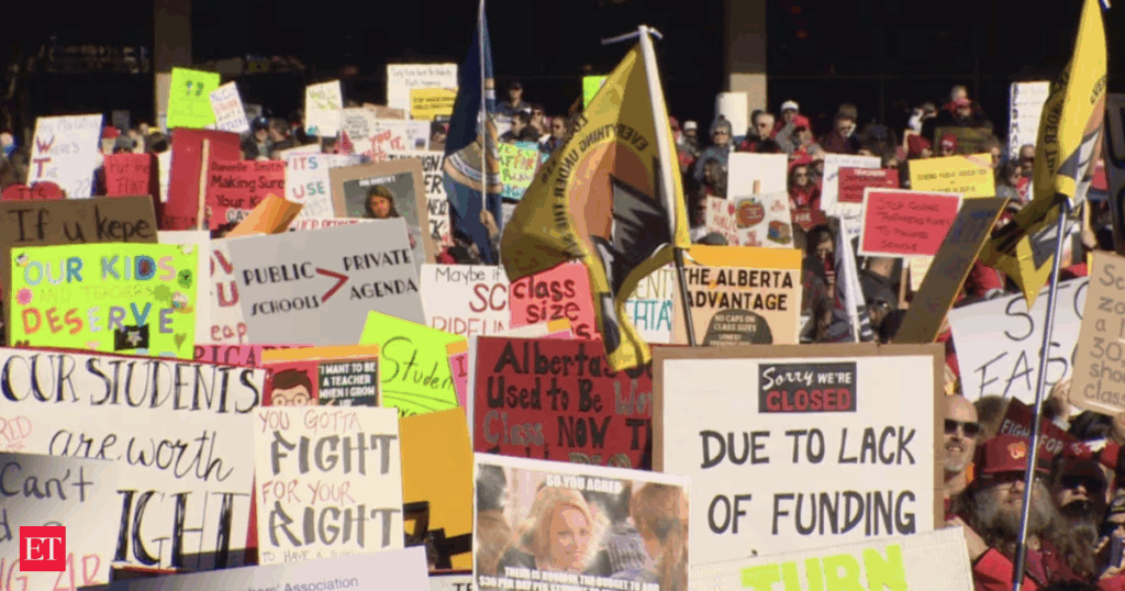Alberta Premier Danielle Smith announced back-to-work legislation will be introduced Monday, October 27, if striking teachers don’t reach a deal. The three-week strike affects 51,000 teachers and 750,000 students provincewide. Teachers protested at the legislature Thursday, October 23, opposing the government’s wage offer and classroom conditions proposals (Catch all the [Business News](https://economictimes.indiatimes.com/news), [Breaking News](https://economictimes.indiatimes.com/breakingnewslist.cms) and […]