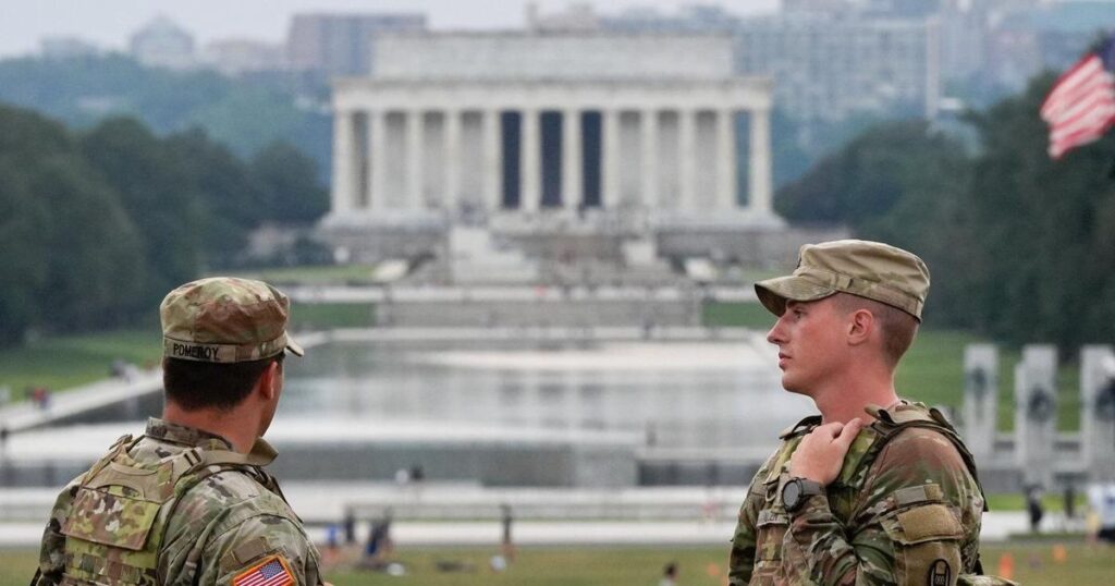 South Carolina National Guardsmen patrol at the base of the Washington Monument, Wednesday, Aug. 20, 2025, in Washington. (AP Photo/Julia Demaree Nikhinson) Armed officers from several federal agencies including U.S. Marshals, FBI, HSI, and Park Police, leave an apartment complex after arresting a man from within the apartment complex, Tuesday, August 19, 2025, in the […]